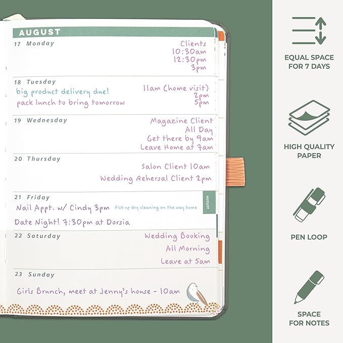 Stay organised and inspired all year with this beautifully designed A5 2026 Weekly Planner, running from January to December 2026. Featuring a clear week-to-view horizontal layout, it’s perfect for managing appointments, deadlines and daily plans with ease. This luxury planner combines a diary and notebook in one, helping you bring calm to even the busiest schedules.
